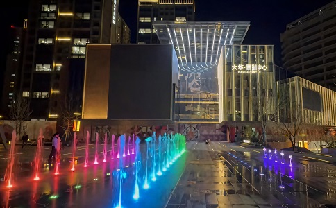 音樂噴泉是運(yùn)動(dòng)的畫卷,跳動(dòng)的音符,流淌的旋律,是聲、光、電與水結(jié)合的詩!